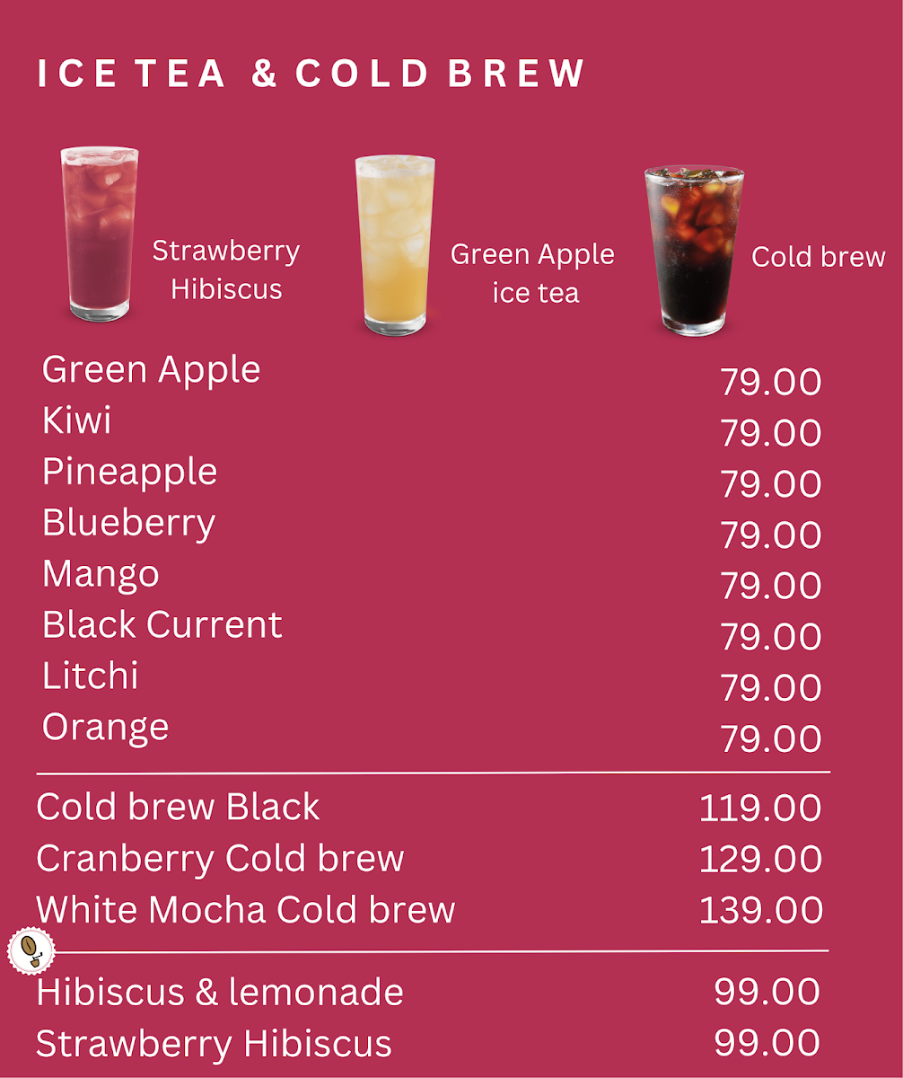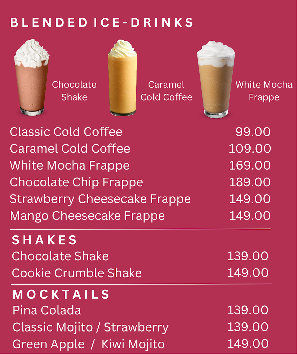 - Blended Ice-Drinks: These are cold, blended beverages featuring coffee mixed with milk, mocha sauce, caramel syrup, and ice. Options include Classic Cold Coffee, Caramel Cold Coffee, White Mocha Frappe, and Java Chip Frappe, catering to those seeking chilled coffee experiences with varying flavors and textures.